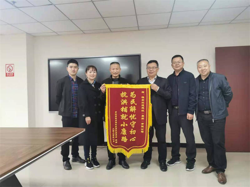 11月10日,雨城區(qū)青江街道石馬社區(qū)黨委書記楊述全、主任張世霞專程來(lái)到雅安交建集團(tuán),代表石馬社區(qū)群眾將寫有“為民解憂守初心·抗洪鋪就小康路”的錦旗贈(zèng)送到交建集團(tuán)黨委書記、董事長(zhǎng)漆家華手中,為在今年8月抗洪搶險(xiǎn)救災(zāi)中交建集團(tuán)對(duì)石馬社區(qū)給予的支持和幫助表示感謝。