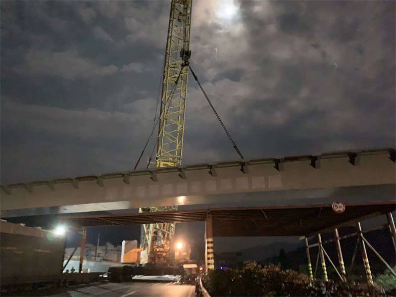 雅西跨線橋首片箱梁架設(shè)成功