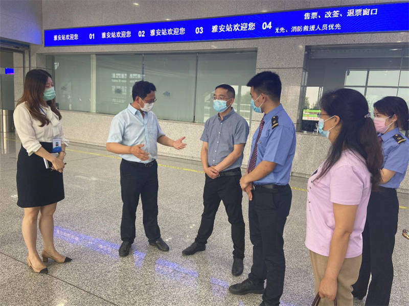 陳武一行分別檢查了火車站出、入站口的人員登記、測溫、掃碼等防疫措施落實情況,聽取了相關情況匯報,對運通公司開展雅安火車站疫情防控工作以來所取得的成效給予了充分肯定。
