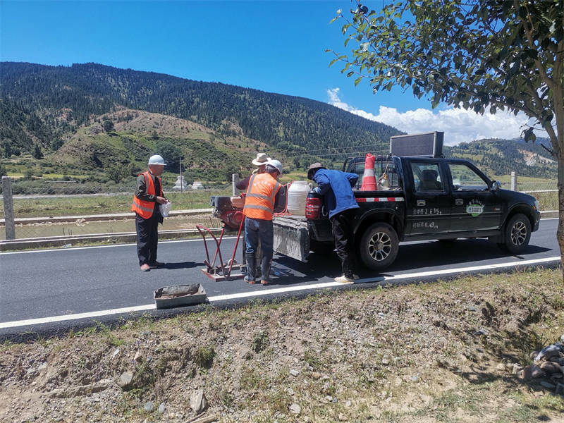 經(jīng)過5天4夜連續(xù)奮戰(zhàn),檢測小組克服高海拔、缺氧、寒冷等困難,完成捧塔鄉(xiāng)至兩河口資源公路、熱柯大橋、澤木橋等12個扶貧檢測項(xiàng)目,累計檢測里程達(dá)311.7公里,抽檢了路面厚度、路面強(qiáng)度、梁板強(qiáng)度、波形護(hù)欄鍍鋅層厚度、立柱壁厚等數(shù)十個參數(shù),圓滿完成了本次扶貧幫扶檢測任務(wù)。