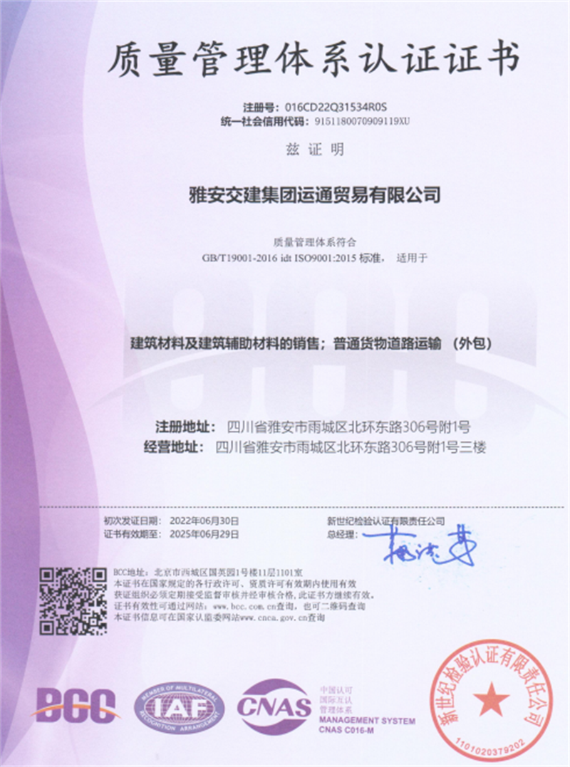 近日,經(jīng)專業(yè)認證機構(gòu)嚴格審核,運通公司順利通過GB/T19001-2016 idt ISO9001:2015質(zhì)量管理體系標準認證。
