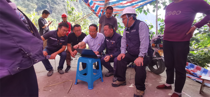 和坪村兩組400余名群眾,遍布于縣道X073兩側(cè)。為全覆蓋掌握該村道路分布、垮塌點(diǎn)位和房屋分布情況,交建集團(tuán)發(fā)揮技術(shù)優(yōu)勢,集團(tuán)黨委書記、董事長漆家華一線督導(dǎo)、多方協(xié)調(diào),組織5名相關(guān)專業(yè)技術(shù)人員,累計(jì)徒步跋涉20余小時(shí),從6個(gè)點(diǎn)位實(shí)施無人機(jī)多角度航拍,累計(jì)拍攝照片1300余張,全覆蓋制作360°實(shí)景圖。并結(jié)合走訪入戶情況,對全村137處村民房屋進(jìn)行精準(zhǔn)定位,繪制具體房屋布置圖,為市縣包保工作組精準(zhǔn)開展工作提供有力的技術(shù)支撐。