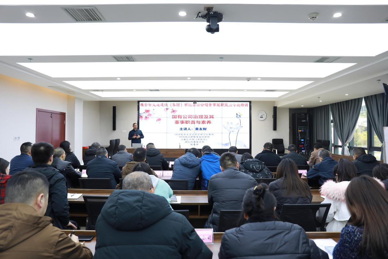 為提高集團(tuán)子公司董事職業(yè)素質(zhì),持續(xù)規(guī)范和加強(qiáng)董事會(huì)建設(shè),切實(shí)提高外部董事的履職能力,充分發(fā)揮外部董事“決策專家、經(jīng)營(yíng)顧問(wèn)”的智庫(kù)作用,12月15日,交建集團(tuán)開展2023年度董事履職能力第三期專題培訓(xùn)會(huì),邀請(qǐng)四川農(nóng)業(yè)大學(xué)教授黃友財(cái)進(jìn)行專題授課。