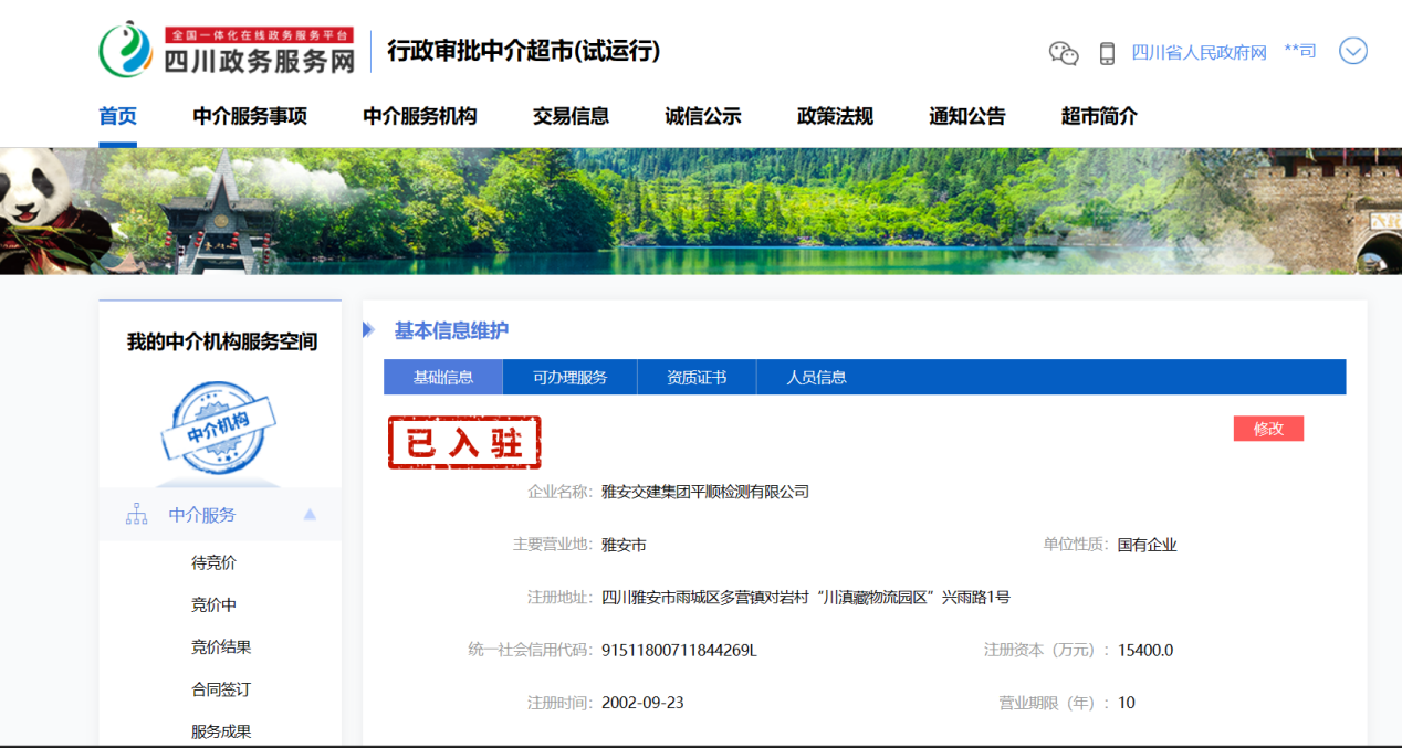 為進(jìn)一步深化“放管服”便民服務(wù),加強(qiáng)行政審批中介服務(wù)事項管理,規(guī)范中介服務(wù)行為,經(jīng)雅安市雨城區(qū)運管所資格審核通過,近日,雅安交建集團(tuán)平順檢測有限公司正式入駐四川政務(wù)服務(wù)網(wǎng)行政審批中介超市。