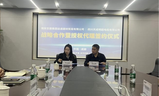 雅安交建建材公司按照集團對運輸貿易業(yè)務高質量發(fā)展要求,積極開展建材市場新興產業(yè)調研和開拓。經不懈努力,近日,與四川天成明超電纜有限公司(以下簡稱:天成公司)成功完成戰(zhàn)略合作暨授權代理簽約。