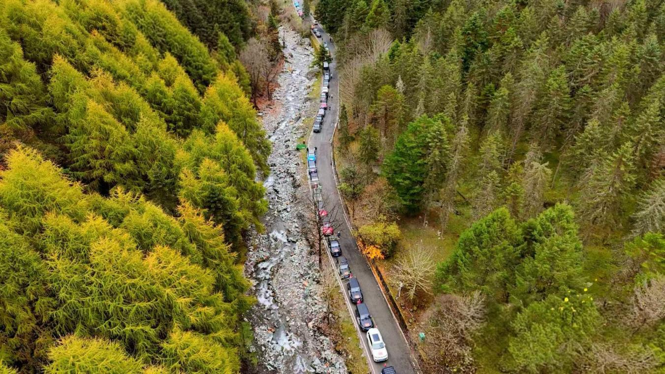 在穿越巡游階段,150輛越野車在大本營集結(jié),組成一條震撼的長龍,開啟穿越巡游活動,前往雅安市寶興縣參加楓葉節(jié)開幕式,沉浸式體驗神木壘景區(qū)、到鄧池溝與大熊貓相約、走進藏寨體驗加絨藏族民俗文化,全方位感受雅安的好山好水好風光。