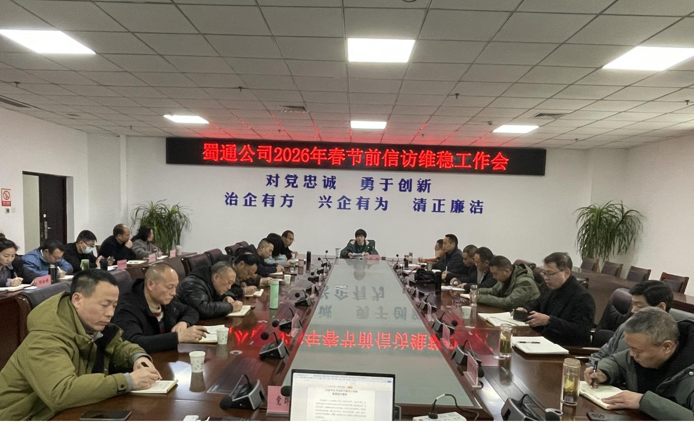為切實做好2026年春節(jié)期間的信訪穩(wěn)定、安全生產(chǎn)與優(yōu)質(zhì)服務工作,營造和諧、有序、平安的節(jié)日出行環(huán)境,2月6日,蜀通公司組織召開春節(jié)前信訪維穩(wěn)工作會。公司黨總支書記、董事長唐娜主持會議,領導班子成員、各部門負責人及各單位黨支部書記和責任人參加。