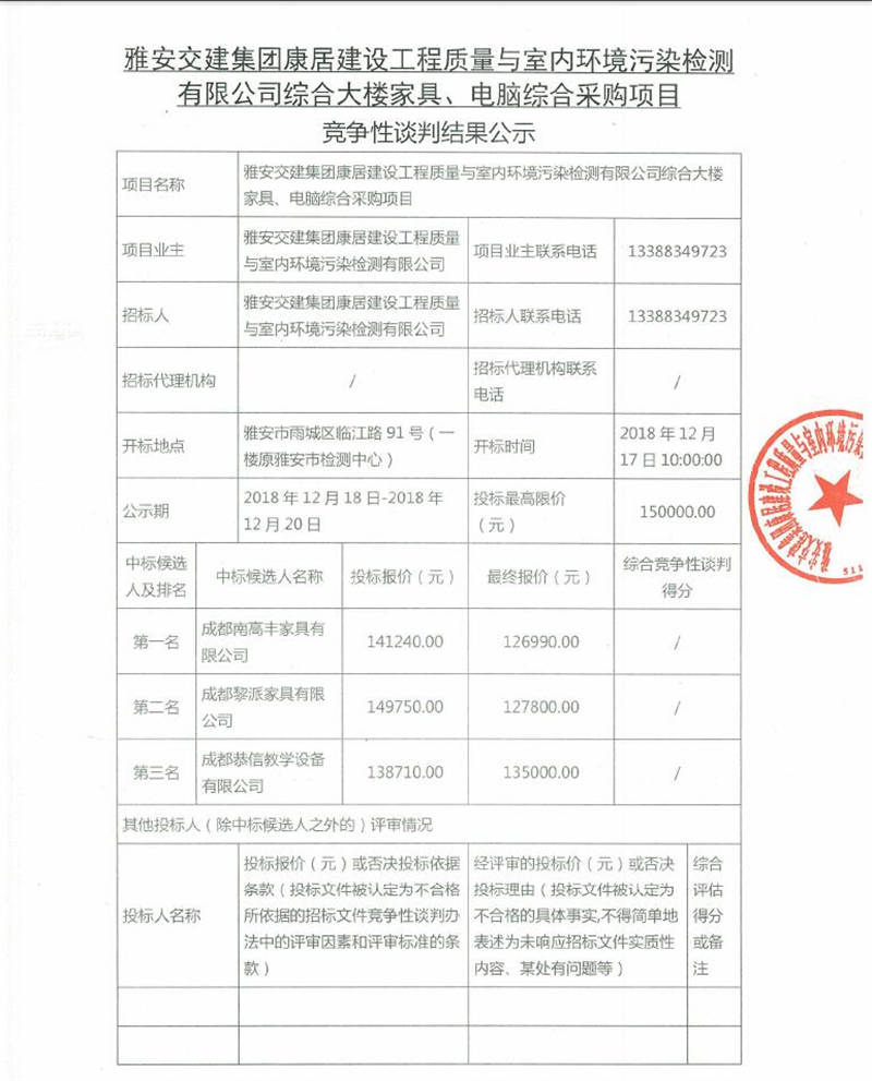 綜合大樓家具、電腦綜合采購項(xiàng)目競爭性談判結(jié)果公示