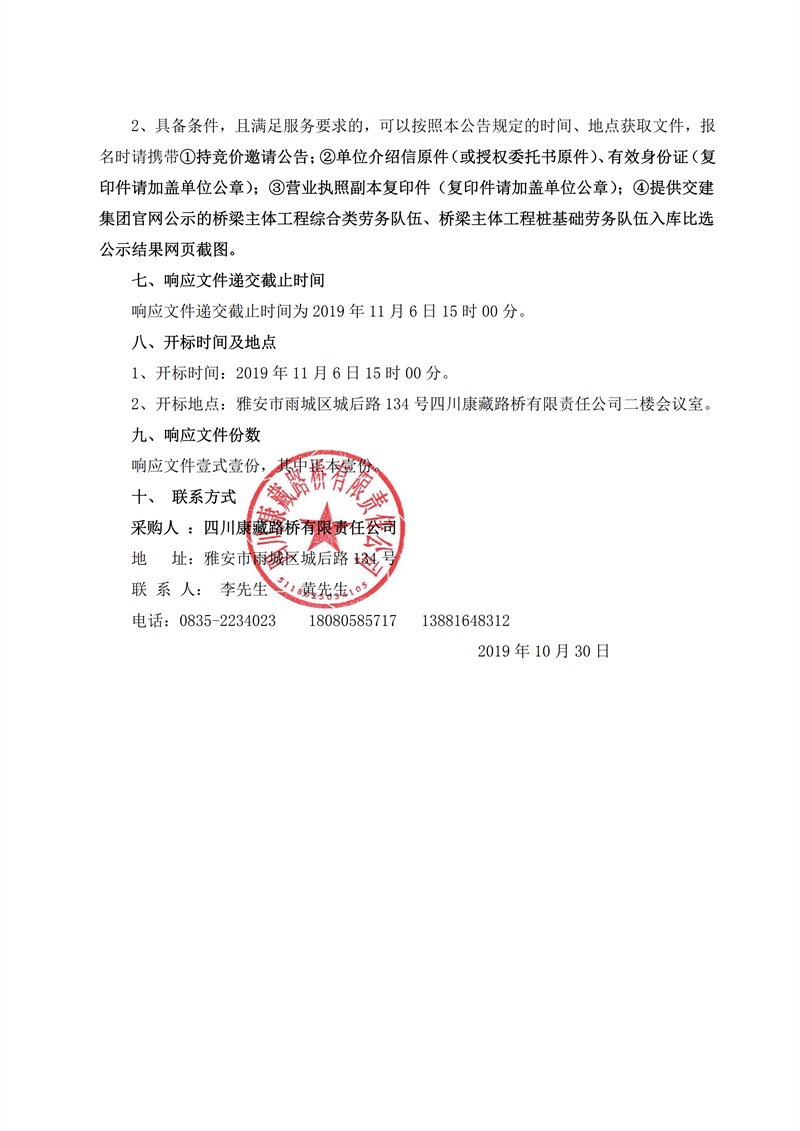 四川康藏路橋有限責(zé)任公司省道104線(xiàn)草壩至姚橋段改建工程項(xiàng)目橋梁樁基礎(chǔ)施工勞務(wù)競(jìng)價(jià)公告