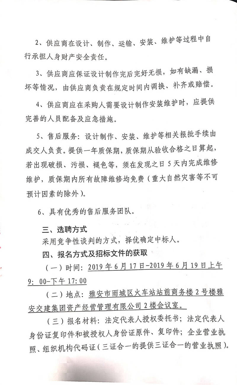 雅安交建集團(tuán)資產(chǎn)經(jīng)營(yíng)管理有限公司關(guān)于選聘成雅高速金雞關(guān)互通及服務(wù)區(qū)項(xiàng)目(雨名快速通道)磨坊溝已征地范圍打圍項(xiàng)目競(jìng)爭(zhēng)性談判公告