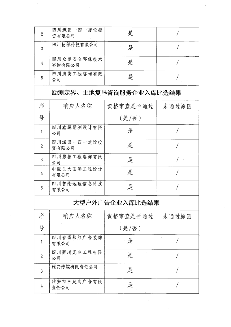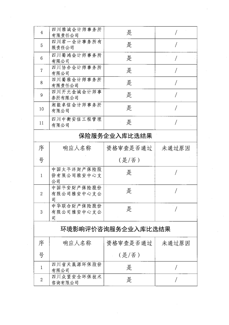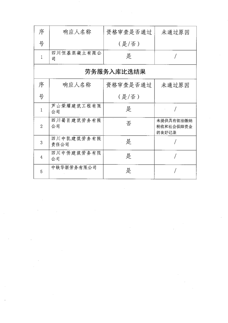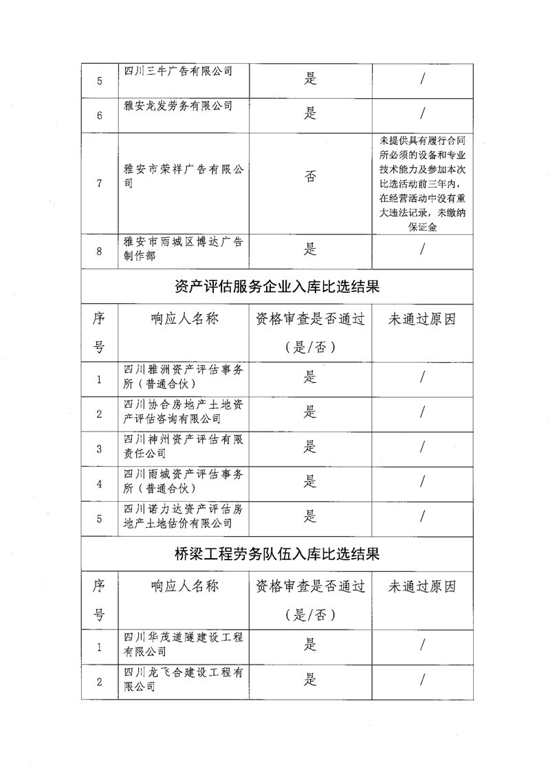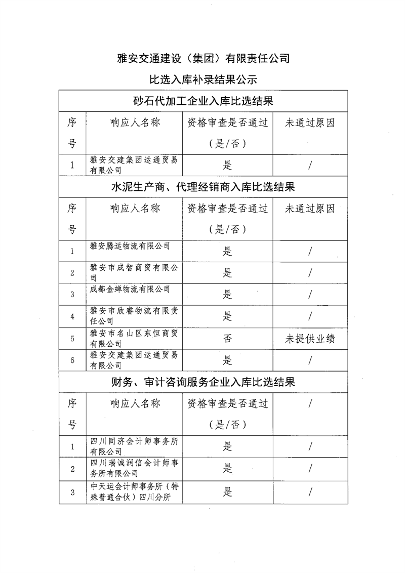 雅安交通建設(集團)有限責任公司比選入庫補錄結果公示