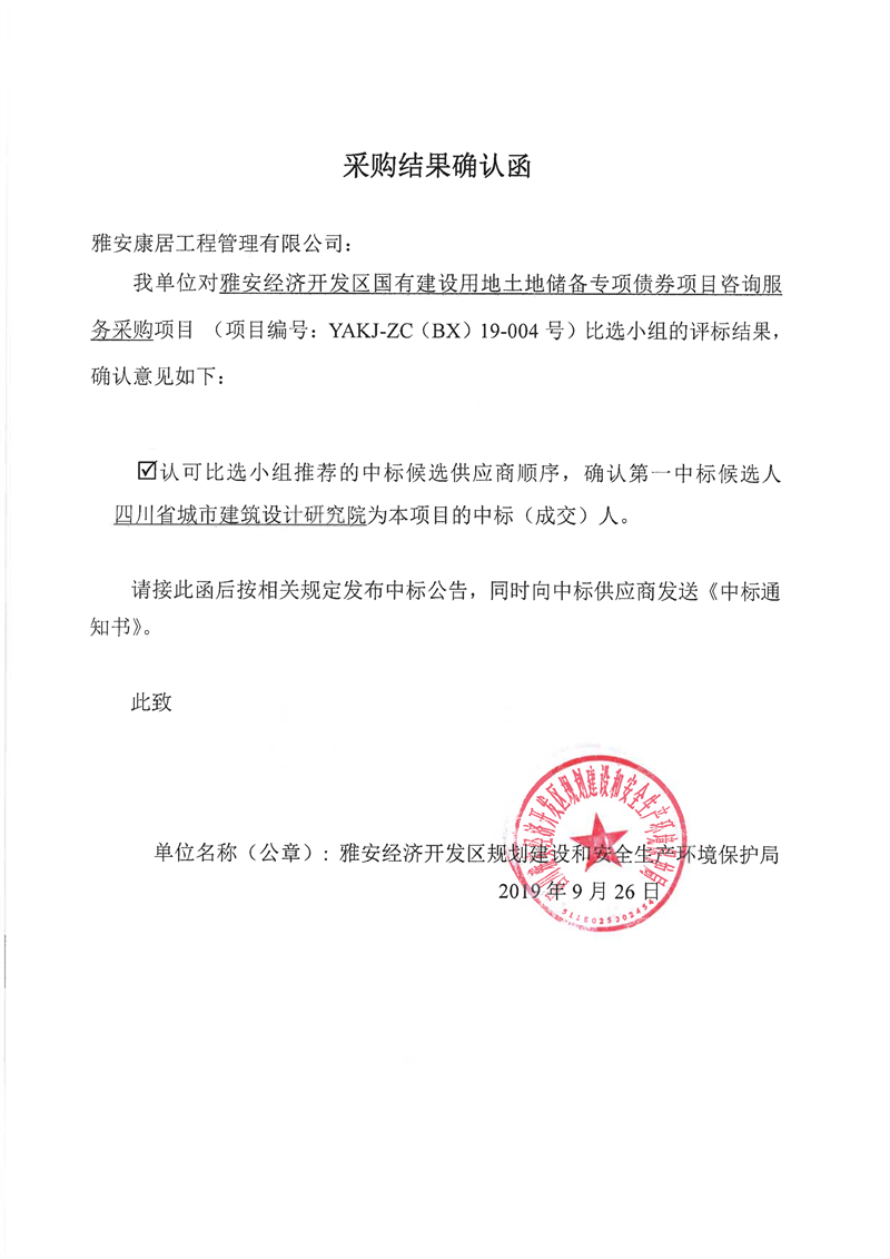 雅安經(jīng)濟(jì)開發(fā)區(qū)國有建設(shè)用地土地儲備專項(xiàng)債券項(xiàng)目咨詢服務(wù)采購比選結(jié)果公示