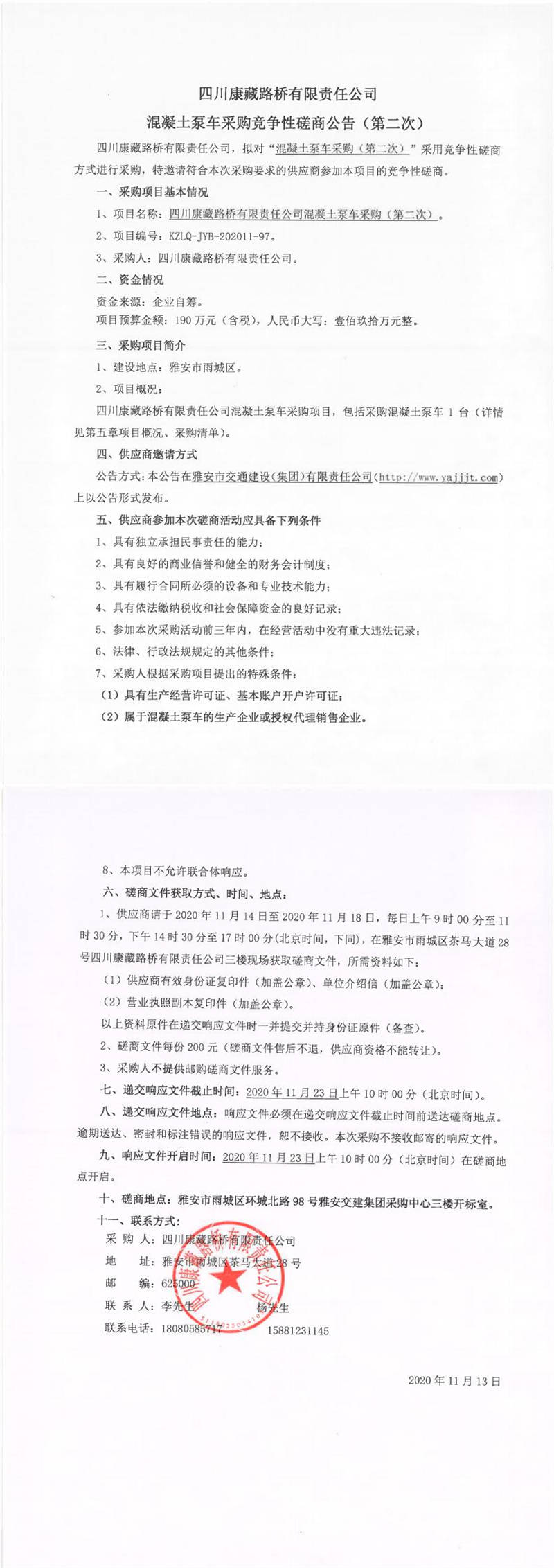 四川康藏路橋有限責(zé)任公司混凝土泵車(chē)采購(gòu)競(jìng)爭(zhēng)性磋商公告(第二次)