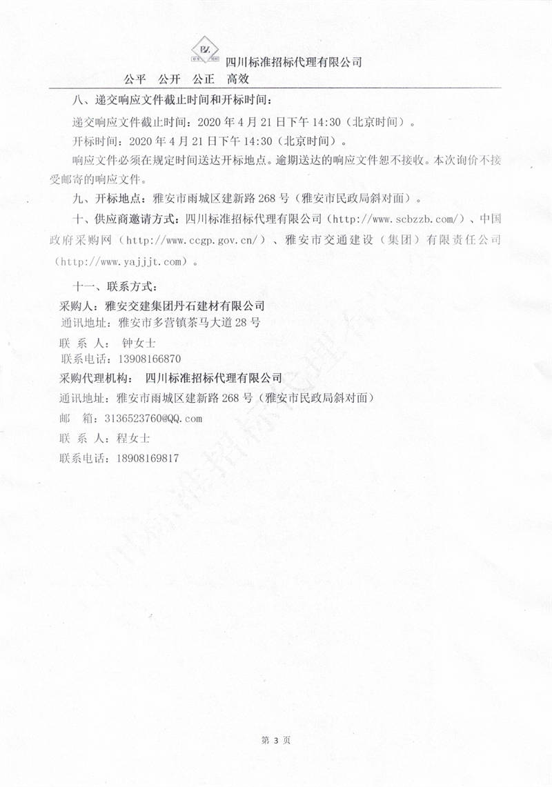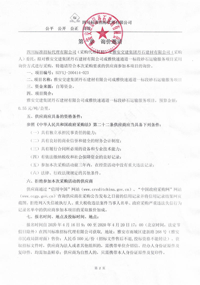 雅安交建集團(tuán)丹石建材有限公司成雅快速通道一標(biāo)段砂石運(yùn)輸服務(wù)項(xiàng)目詢價(jià)公告