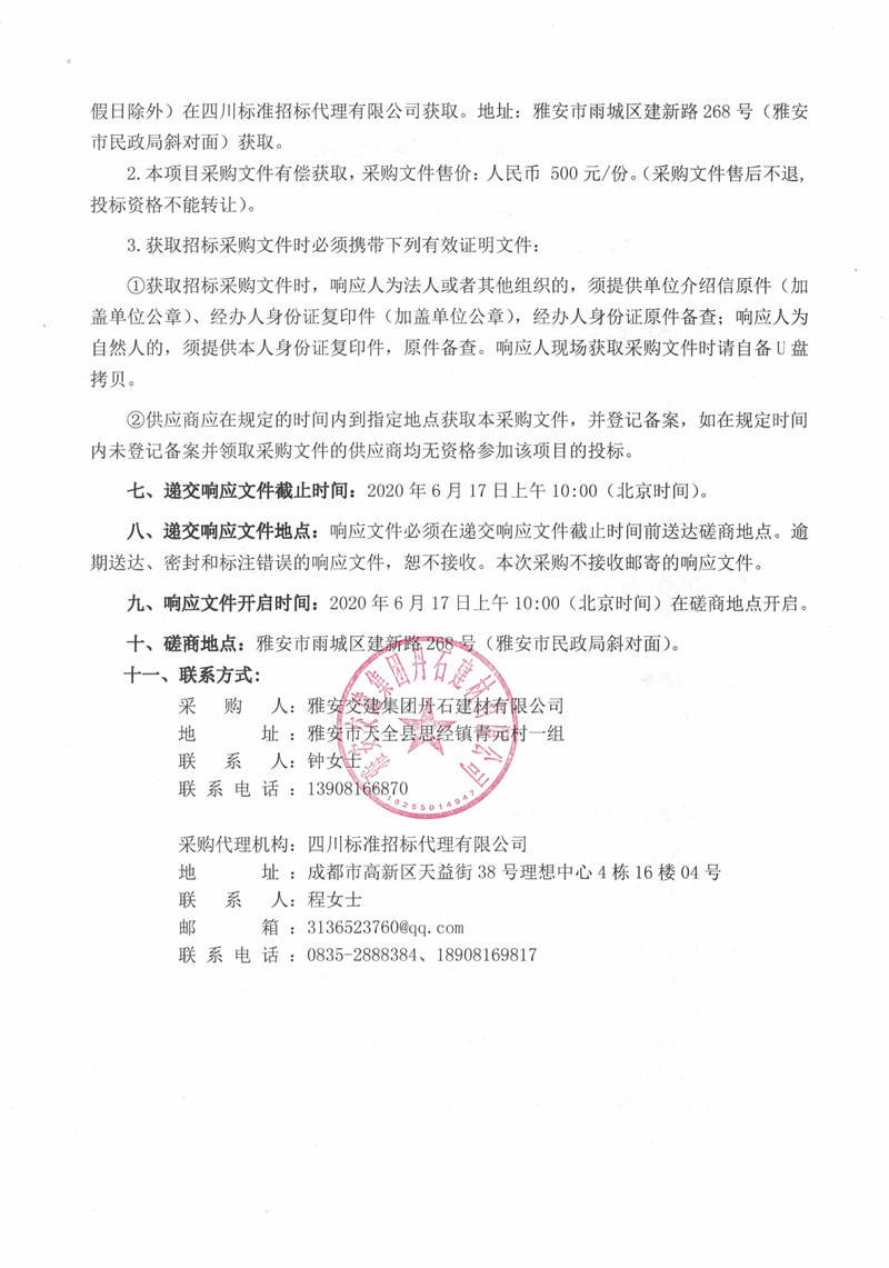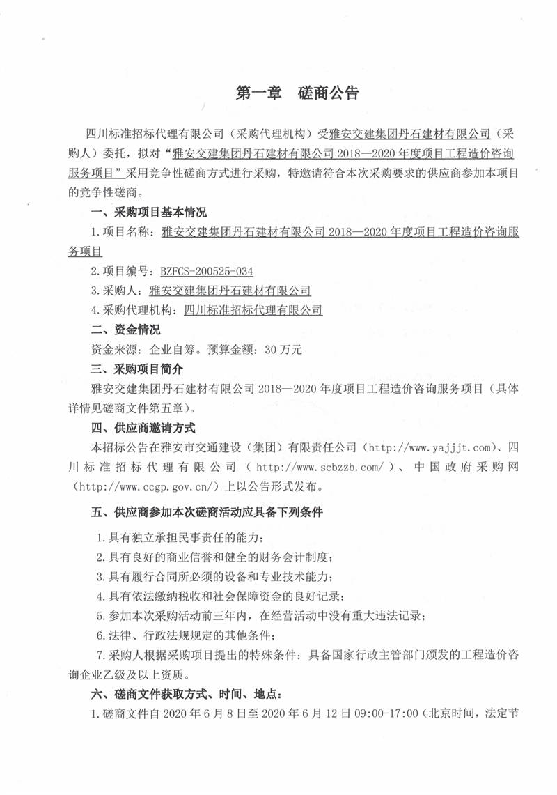 雅安交建集團(tuán)丹石建材有限公司2018—2020年度項(xiàng)目工程造價(jià)咨詢服務(wù)項(xiàng)目競爭性磋商公告