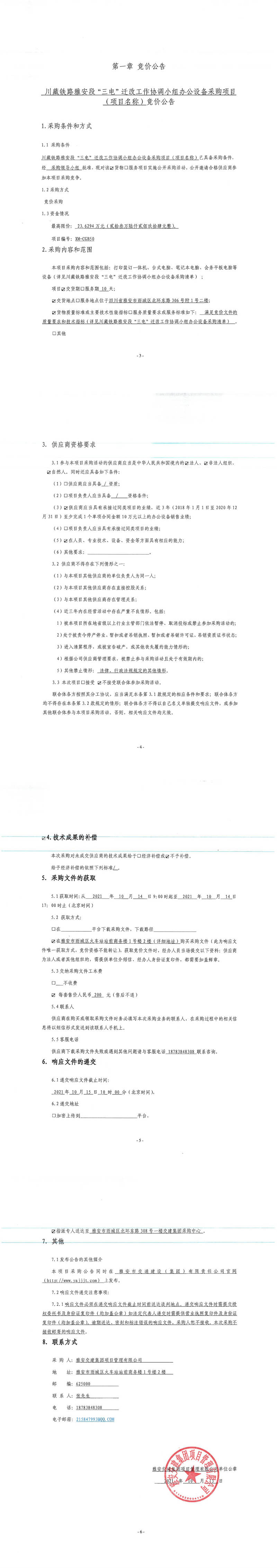 雅安交建集團(tuán)項(xiàng)目管理有限公司川藏鐵路雅安段“三電”遷改工作協(xié)調(diào)小組辦公設(shè)備采購項(xiàng)目競價(jià)公告