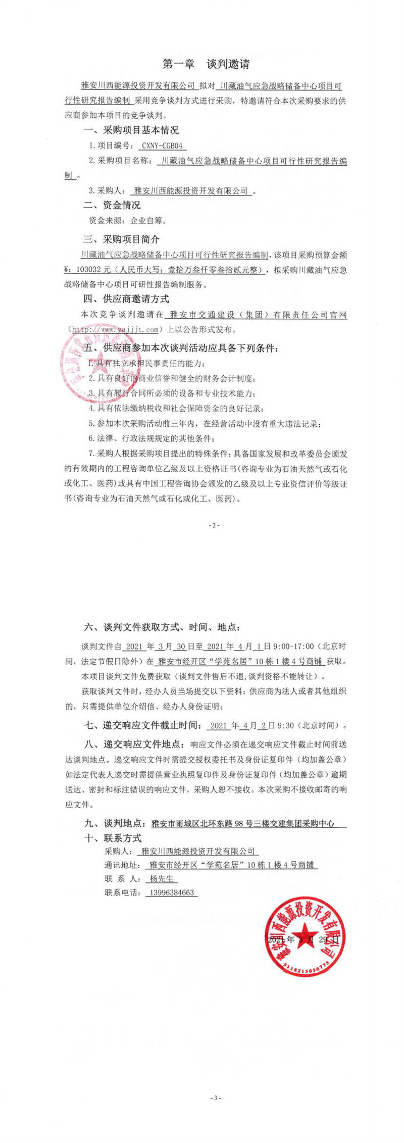 雅安川西能源投資開發(fā)有限公司川藏油氣應(yīng)急戰(zhàn)略儲(chǔ)備中心項(xiàng)目可行性研究報(bào)告編制競爭談判公告