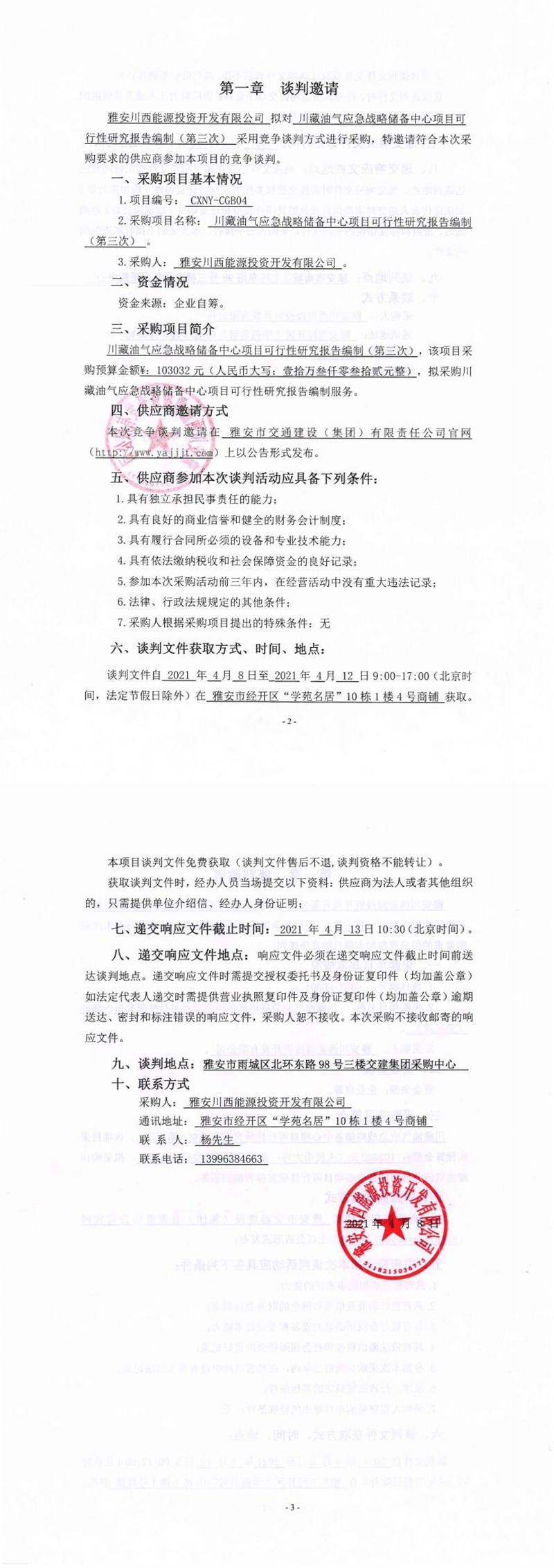 雅安川西能源投資開發(fā)有限公司川藏油氣應(yīng)急戰(zhàn)略儲備中心項(xiàng)目可行性研究報(bào)告編制(第三次)競爭談判公告