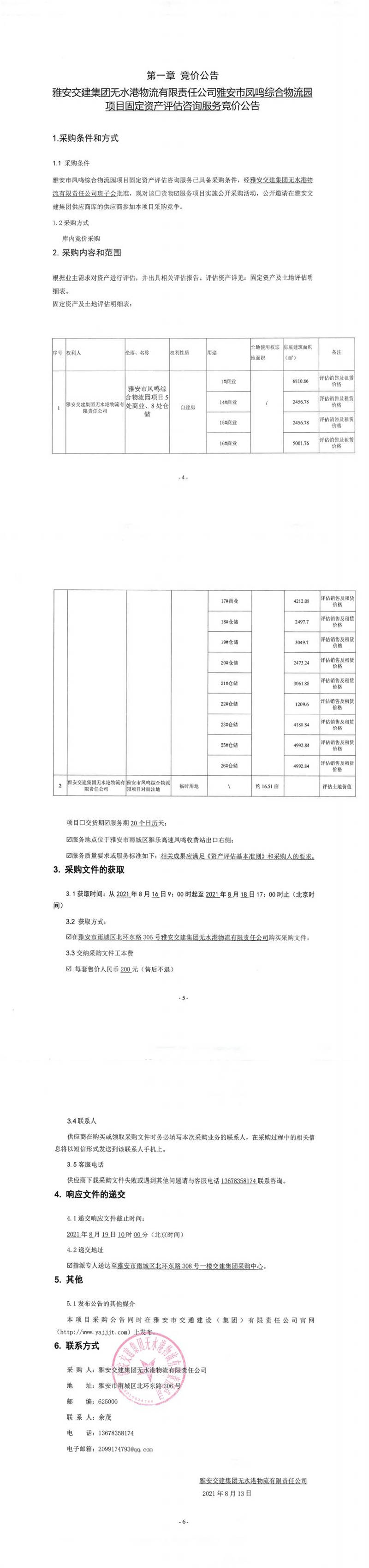 雅安交建集團(tuán)無水港物流有限責(zé)任公司雅安市鳳鳴綜合物流園項(xiàng)目固定資產(chǎn)評(píng)估咨詢服務(wù)競(jìng)價(jià)公告