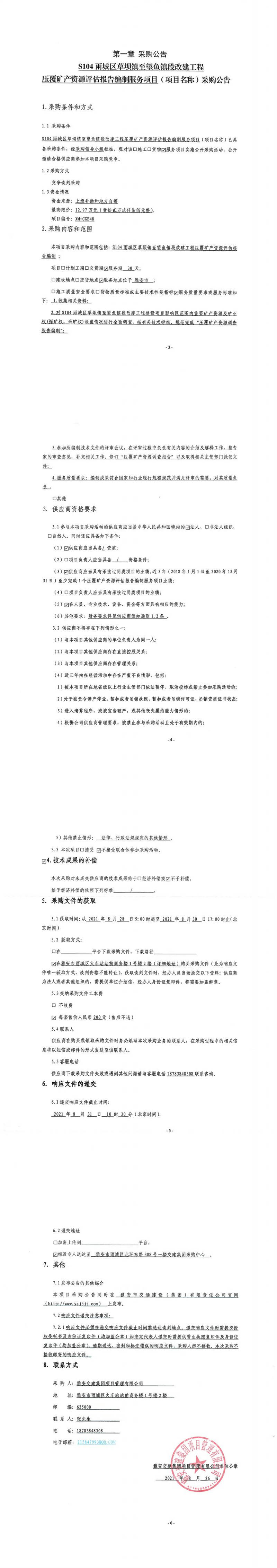 雅安交建集團(tuán)項(xiàng)目管理有限公司S104雨城區(qū)草壩鎮(zhèn)至望魚鎮(zhèn)段改建工程壓覆礦產(chǎn)資源評估報(bào)告編制服務(wù)項(xiàng)目采購公告