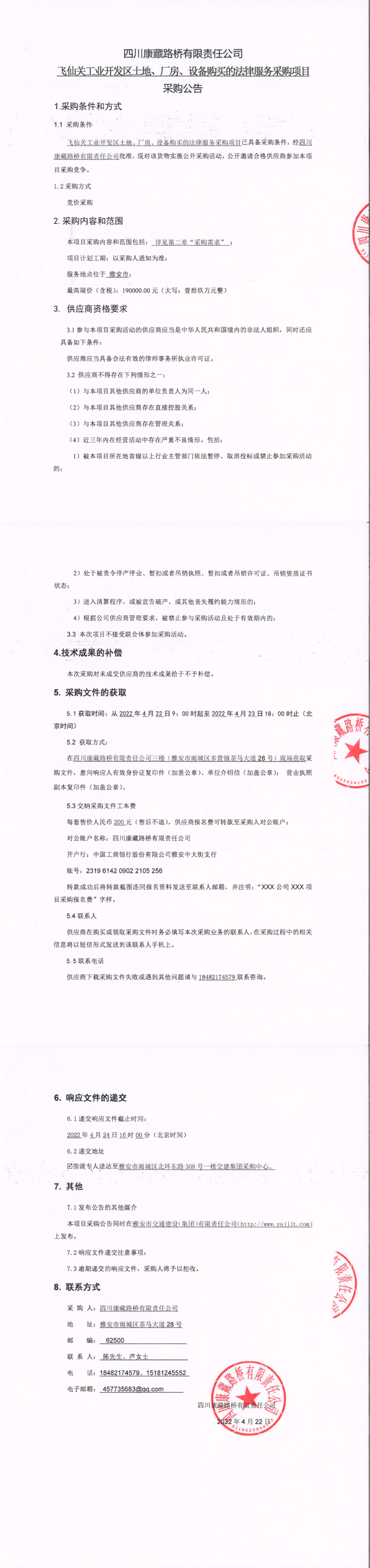 四川康藏路橋有限責(zé)任公司飛仙關(guān)工業(yè)開發(fā)區(qū)土地、廠房、設(shè)備購買的法律服務(wù)采購項(xiàng)目采購公告