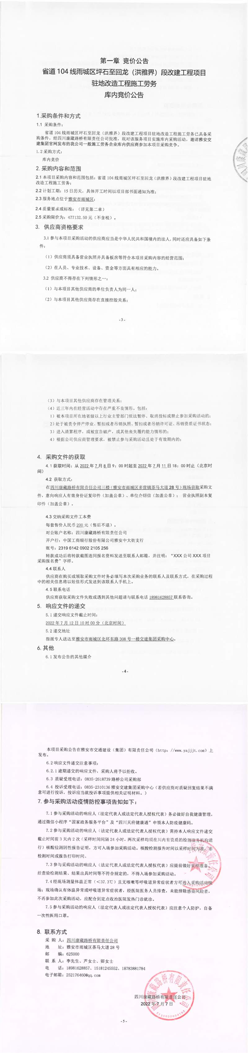 四川康藏路橋有限責任公司省道104線雨城區(qū)坪石至回龍(洪雅界)段改建工程項目駐地改造工程施工勞務(wù)庫內(nèi)競價公告