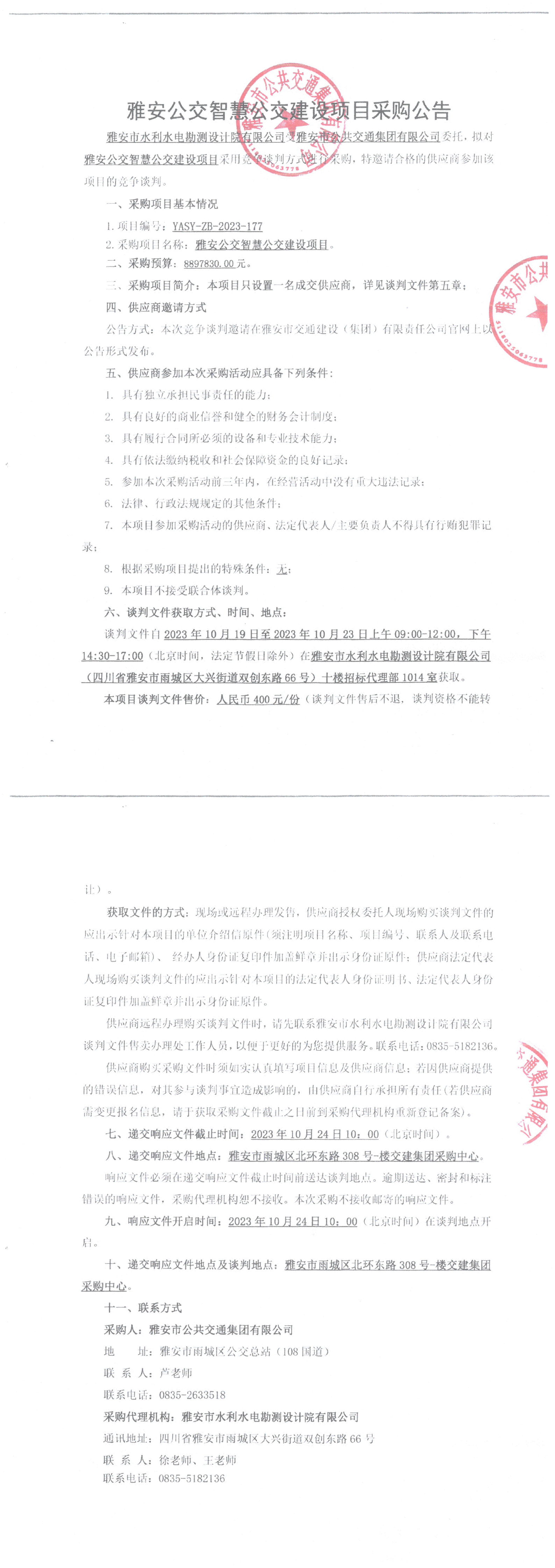 雅安市公共交通集團有限公司雅安公交智慧公交建設(shè)項目采購公告