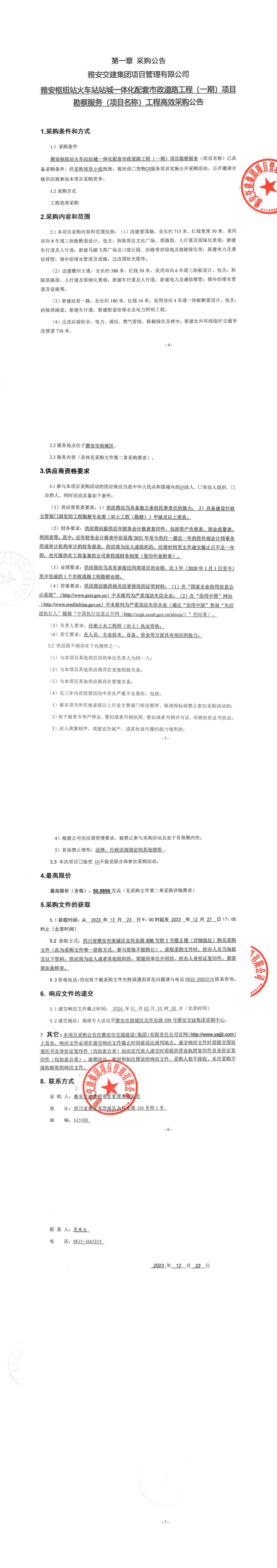 雅安交建集團項目管理有限公司雅安樞紐站火車站站城一體化配套市政道路工程(一期)項目勘察服務(項目名稱)工程高效采購公告