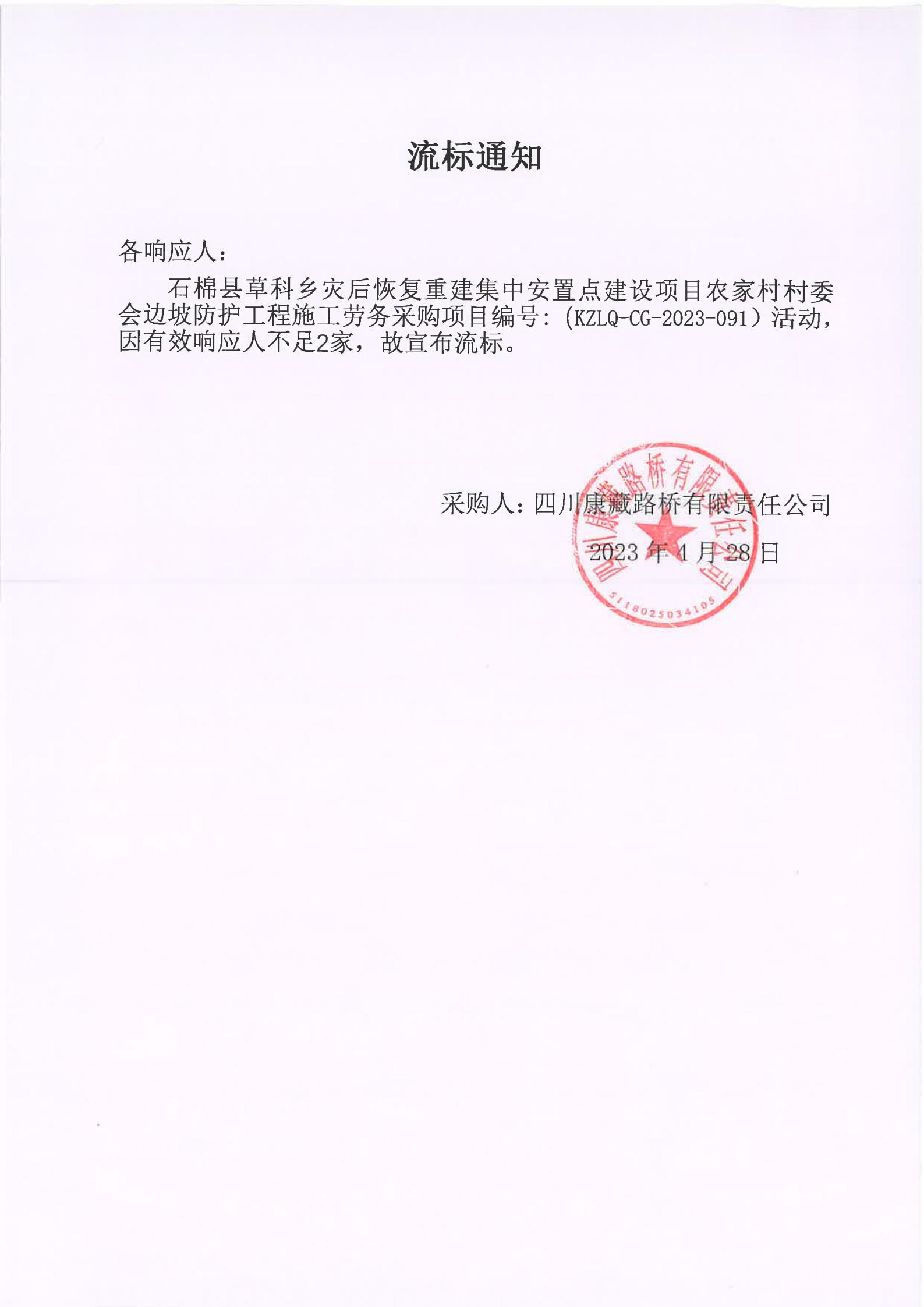 四川康藏路橋有限責(zé)任公司石棉草科鄉(xiāng)災(zāi)后恢復(fù)重建集中安置點(diǎn)建設(shè)項目農(nóng)家村村委會邊坡防護(hù)工程施工勞務(wù)流標(biāo)通知
