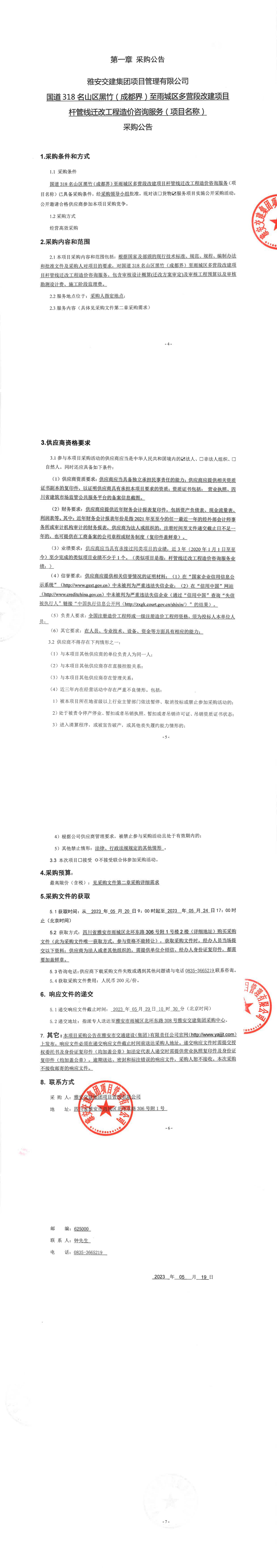 雅安交建集團(tuán)項(xiàng)目管理有限公司國(guó)道318名山區(qū)黑竹(成都界)至雨城區(qū)多營(yíng)段改建項(xiàng)目桿管線遷改工程造價(jià)咨詢服務(wù)(項(xiàng)目名稱(chēng))采購(gòu)公告