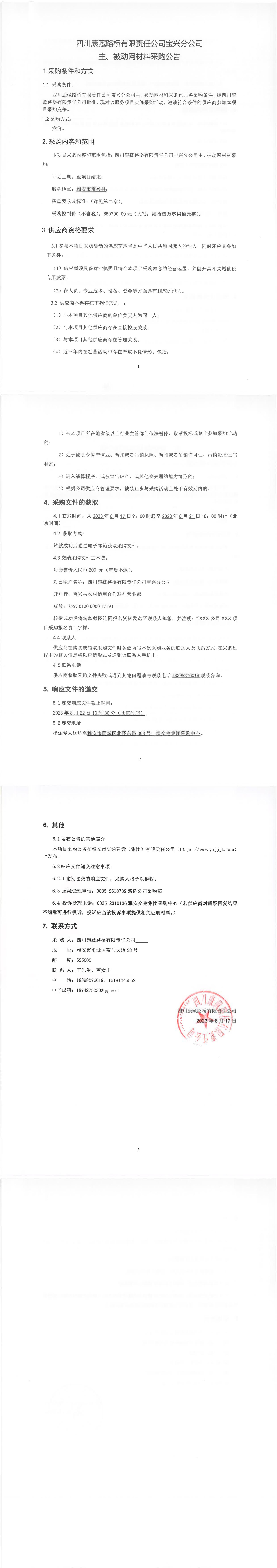 四川康藏路橋有限責任公司寶興分公司主、被動網材料采購公告