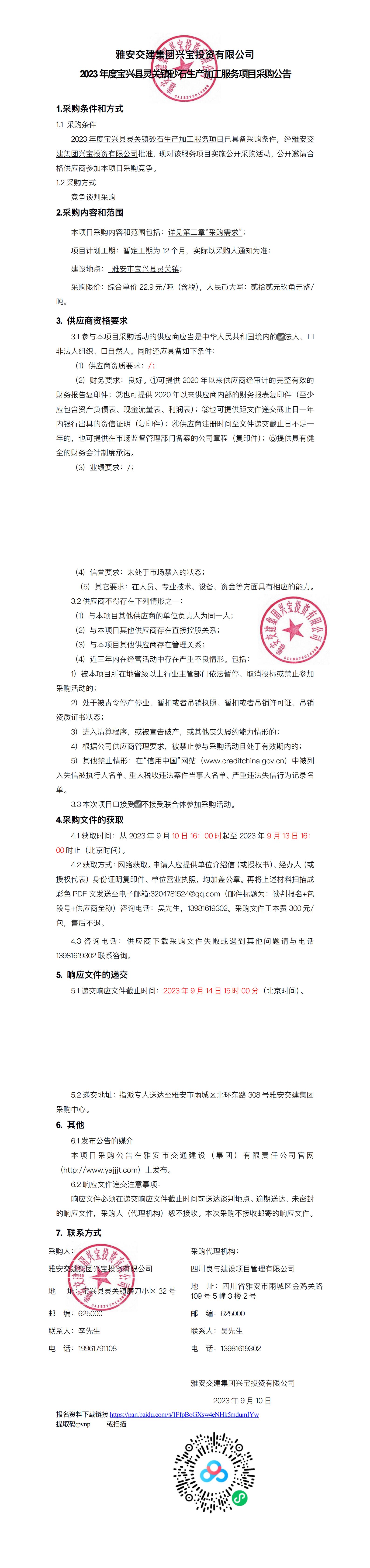 雅安交建集團(tuán)興寶投資有限公司2023年度寶興縣靈關(guān)鎮(zhèn)砂石生產(chǎn)加工服務(wù)項(xiàng)目采購(gòu)公告