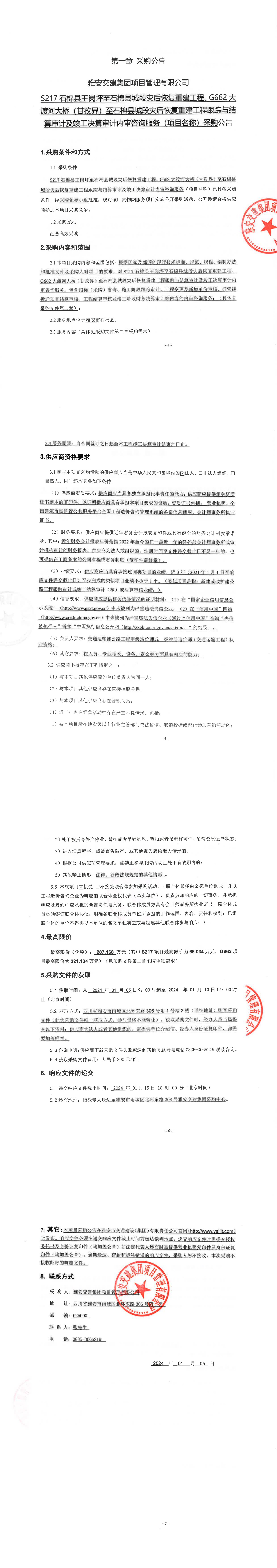 雅安交建集團(tuán)項(xiàng)目管理有限公司S217石棉縣王崗坪至石棉縣城段災(zāi)后恢復(fù)重建工程、G662大渡河大橋(甘孜界)至石棉縣城段災(zāi)后恢復(fù)重建工程跟蹤與結(jié)算審計(jì)及竣工決算審計(jì)內(nèi)審咨詢服務(wù)(項(xiàng)目名稱)采購(gòu)公告