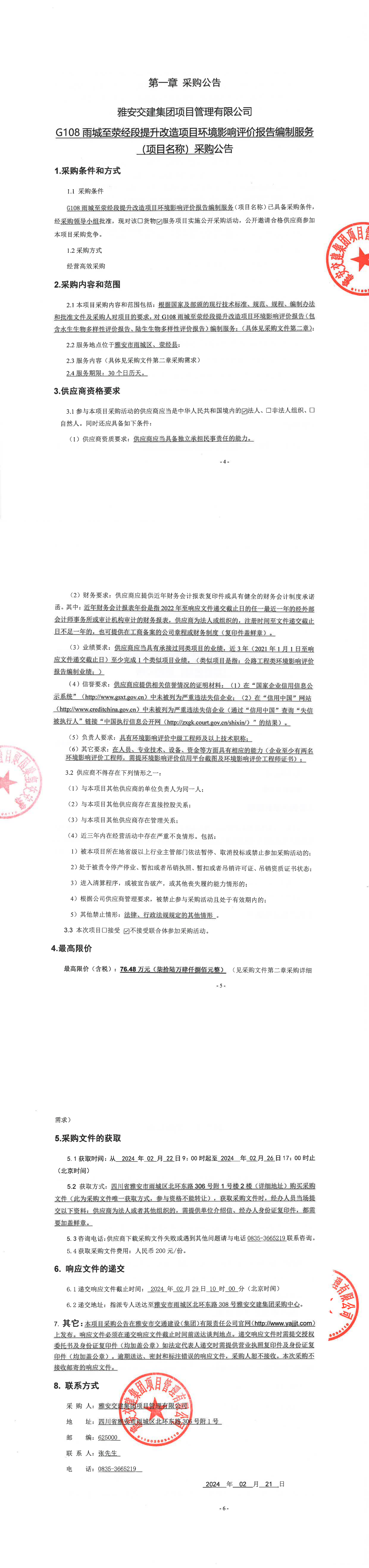 雅安交建集團(tuán)項(xiàng)目管理有限公司G108雨城至滎經(jīng)段提升改造項(xiàng)目環(huán)境影響評(píng)價(jià)報(bào)告編制服務(wù)(項(xiàng)目名稱)采購公告