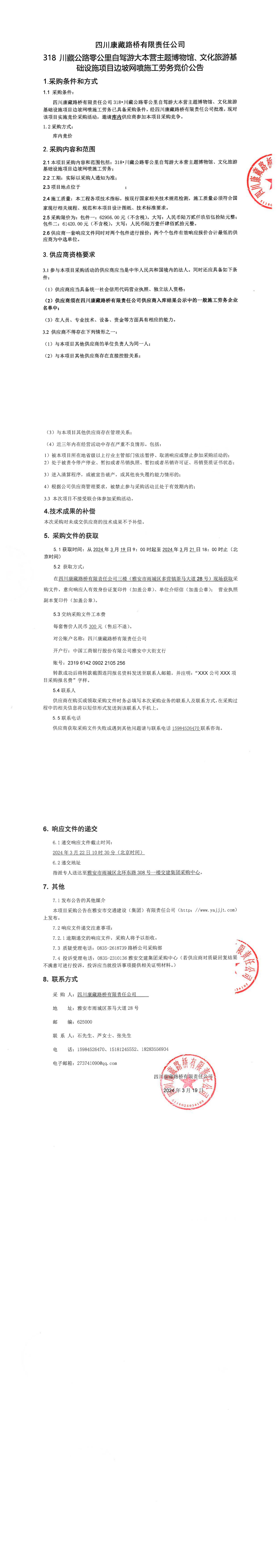 四川康藏路橋有限責(zé)任公司318•川藏公路零公里自駕游大本營(yíng)主題博物館、文化旅游基礎(chǔ)設(shè)施項(xiàng)目邊坡網(wǎng)噴施工勞務(wù)采購公告