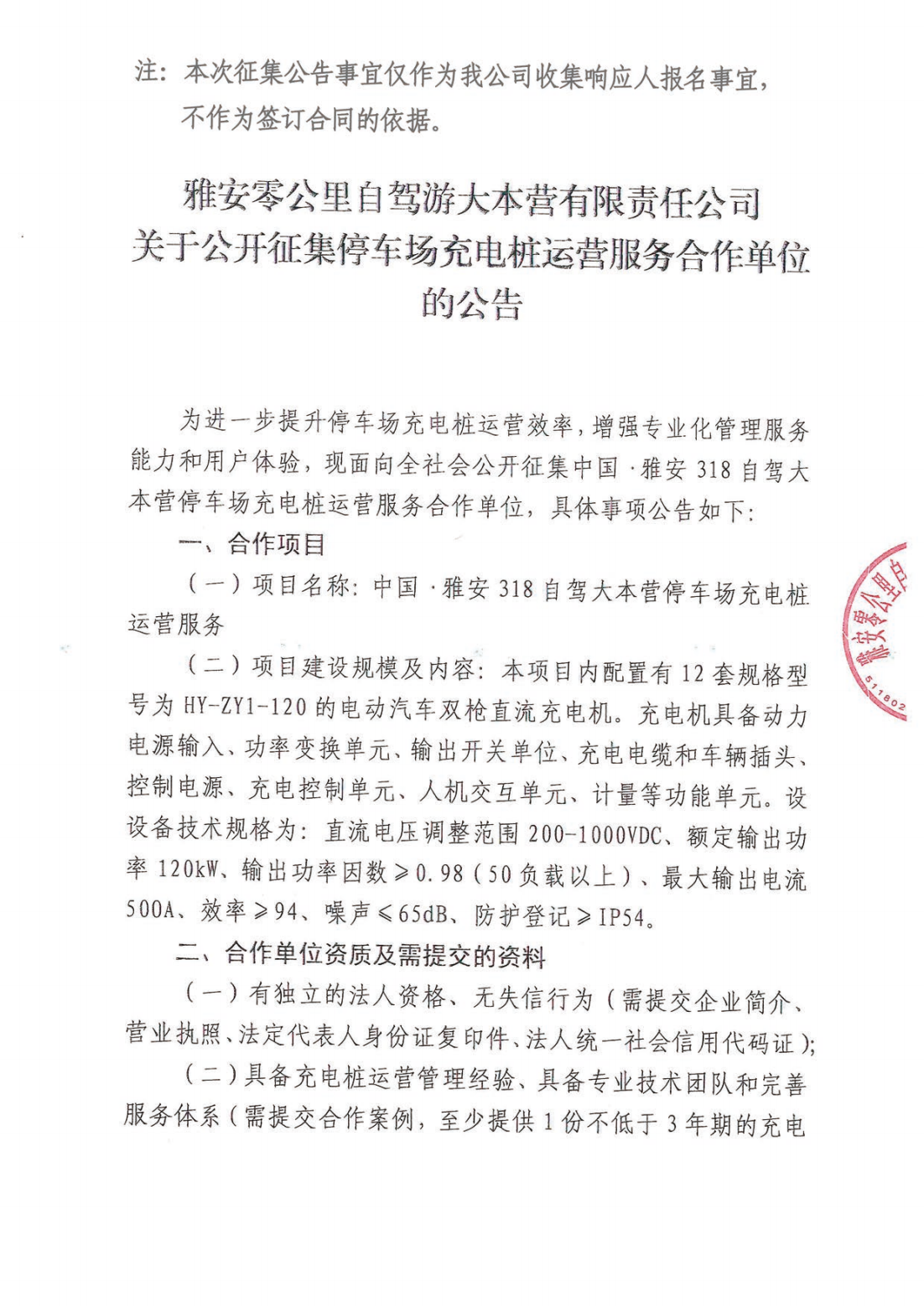 關(guān)于公開(kāi)征集停車場(chǎng)充電樁運(yùn)營(yíng)服務(wù)合作單位的公告
