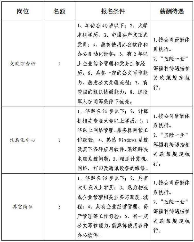 雅安交建集團(tuán)無水港物流有限責(zé)任公司主要從事雅安市快遞物流分撥、集裝箱掏拼箱作業(yè)、倉儲等業(yè)務(wù)。現(xiàn)根據(jù)公司業(yè)務(wù)發(fā)展需要,雨城分公司擬招聘5名工作人員,現(xiàn)將有關(guān)事項公告如下: