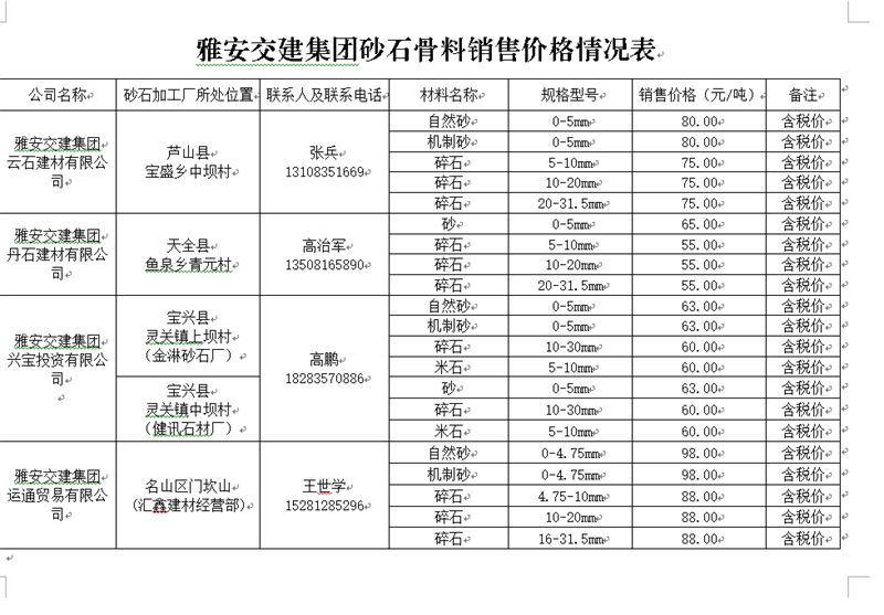 三、興寶投資有限公司。興寶公司是寶興縣人民政府指定寶興縣發(fā)展投資有限責(zé)任公司與雅安市交通建設(shè)(集團(tuán))有限責(zé)任公司共同組建的合資公司。目前,公司與兩家企業(yè)確定了代加工合作關(guān)系:一是寶興縣健迅石材廠;二是寶興縣金淋砂石有限公司;預(yù)計年生產(chǎn)能力約200萬噸。生產(chǎn)廠區(qū)距雨城區(qū)中心城區(qū)約55公里。