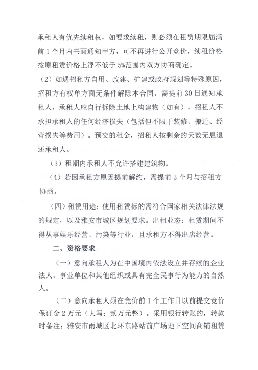 雅安交建資產(chǎn)經(jīng)營(yíng)管理有限公司雨名快速通道黑碾子場(chǎng)地招租公告