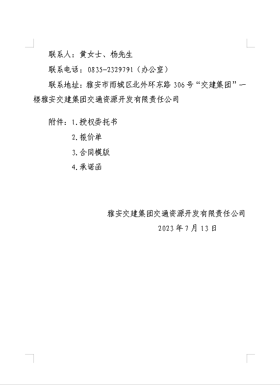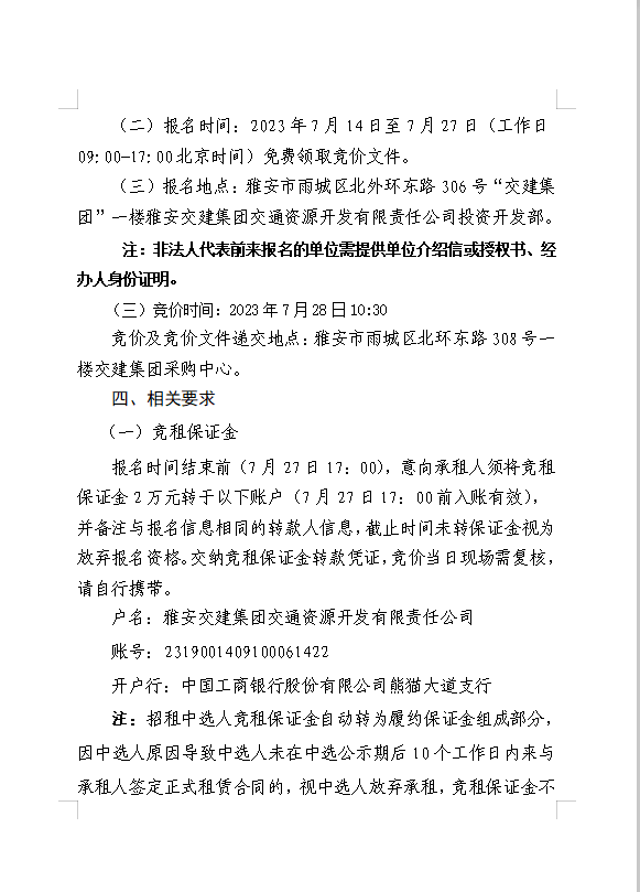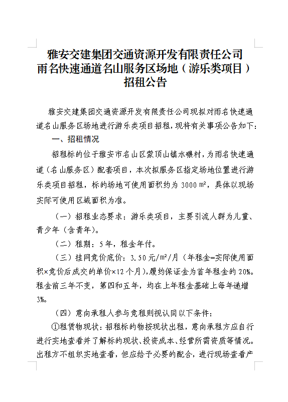 雅安交建集團交通資源開發(fā)有限責(zé)任公司雨名快速通道名山服務(wù)區(qū)場地(游樂類項目)招租公告附件