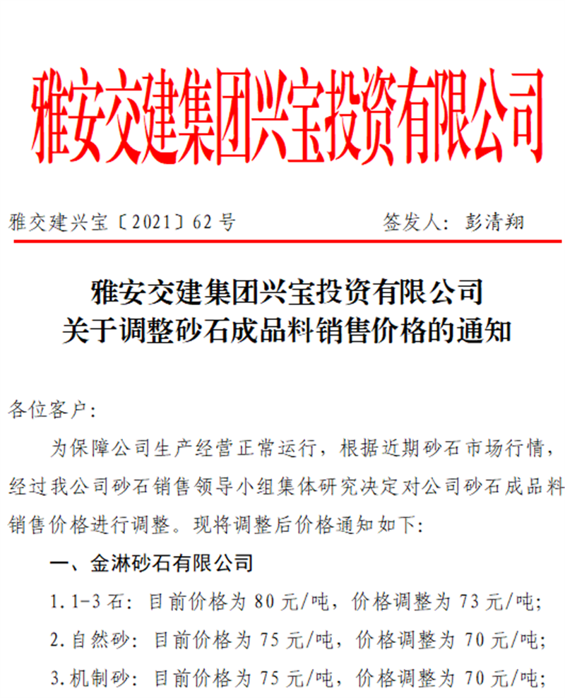 ÑŰ²½»½¨¼¯ˆF(tu¨¢n)ÅdŒš¹«Ë¾êP(gu¨¡n)ÓÚÕ{(di¨¤o)Õûɰʯ³ÉÆ·ÁÏäNÊÛƒr¸ñµÄ֪ͨ£¨2021.9.28£©